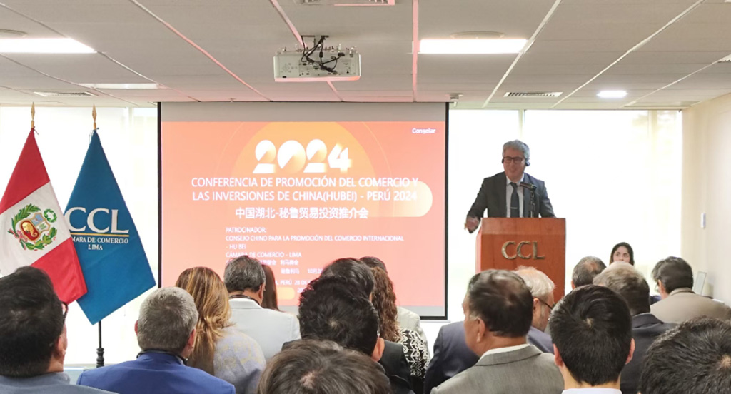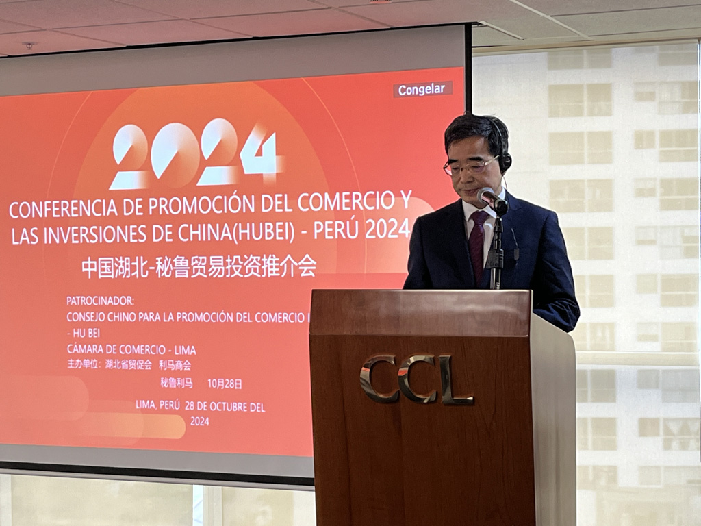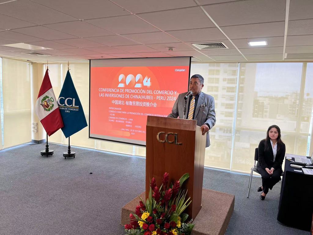 秘鲁是最早同新中国建交、最早同中国建立全面战略伙伴关系的拉美国家之一。近年来,中秘双边贸易不断扩大,中国成为秘鲁第一大贸易伙伴、第一大出口市场和第一大进口来源国。10月28日上午,省贸促会、利马商会联合主办2024中国湖北-秘鲁贸易投资推介会。秘鲁农业和灌溉部副部长克里斯蒂安•加雷、经济财政部副部长卡洛斯•冈萨雷斯、安第斯山地区联盟执行主任赫苏斯•奎斯佩•阿龙内斯、前外贸和旅游部部长胡安•马修斯、前外贸和旅游部部长玛嘉莉•席尔瓦、利马商会主任兼执行董事卡洛斯•波萨达,秘鲁相关企业以及湖北农业、生物科技、清洁能源、工程建筑、矿山开采等行业龙头企业代表共计100余人参会。
