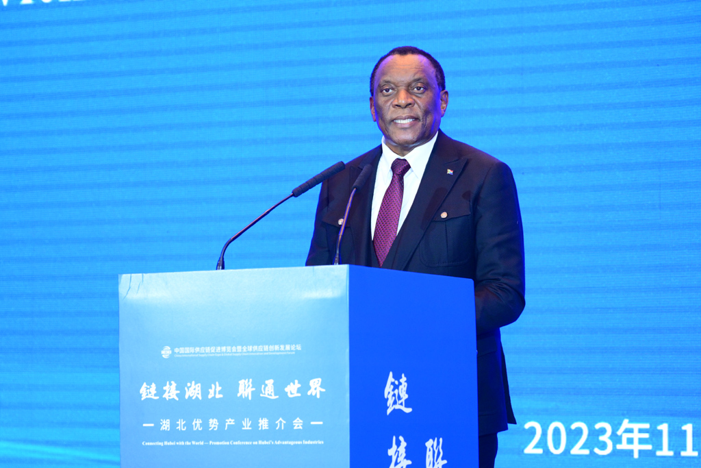 Hubei Advantage Industries Promotion Conference was successfully held in Beijing On November 28th. This promotion conference is jointly hosted by Hubei Provincial People's Government and China Council for the Promotion of International Trade, and jointly organized by the CCPIT Hubei and the Hubei Department of Commerce. The theme is "Connecting Hubei, Connecting the World". Chen Jianan, Vice President of CCPIT, Sheng Yuechun, Vice Governor of Hubei Provincial People's Government, ambassadors from 8 countries including South Africa, Uruguay, El Salvador, and Ecuador to China, diplomatic envoys from Denmark, Peru, Spain, and other countries to China, more than 30 domestic and foreign associations including the National Committee for US China Trade, the UK China Trade Association, the German Chamber of Commerce, and CCCME, as well as representatives of well-known domestic and foreign enterprises such as Honeywell and CNNC Investment, Nearly 500 people participated in the Conference.
