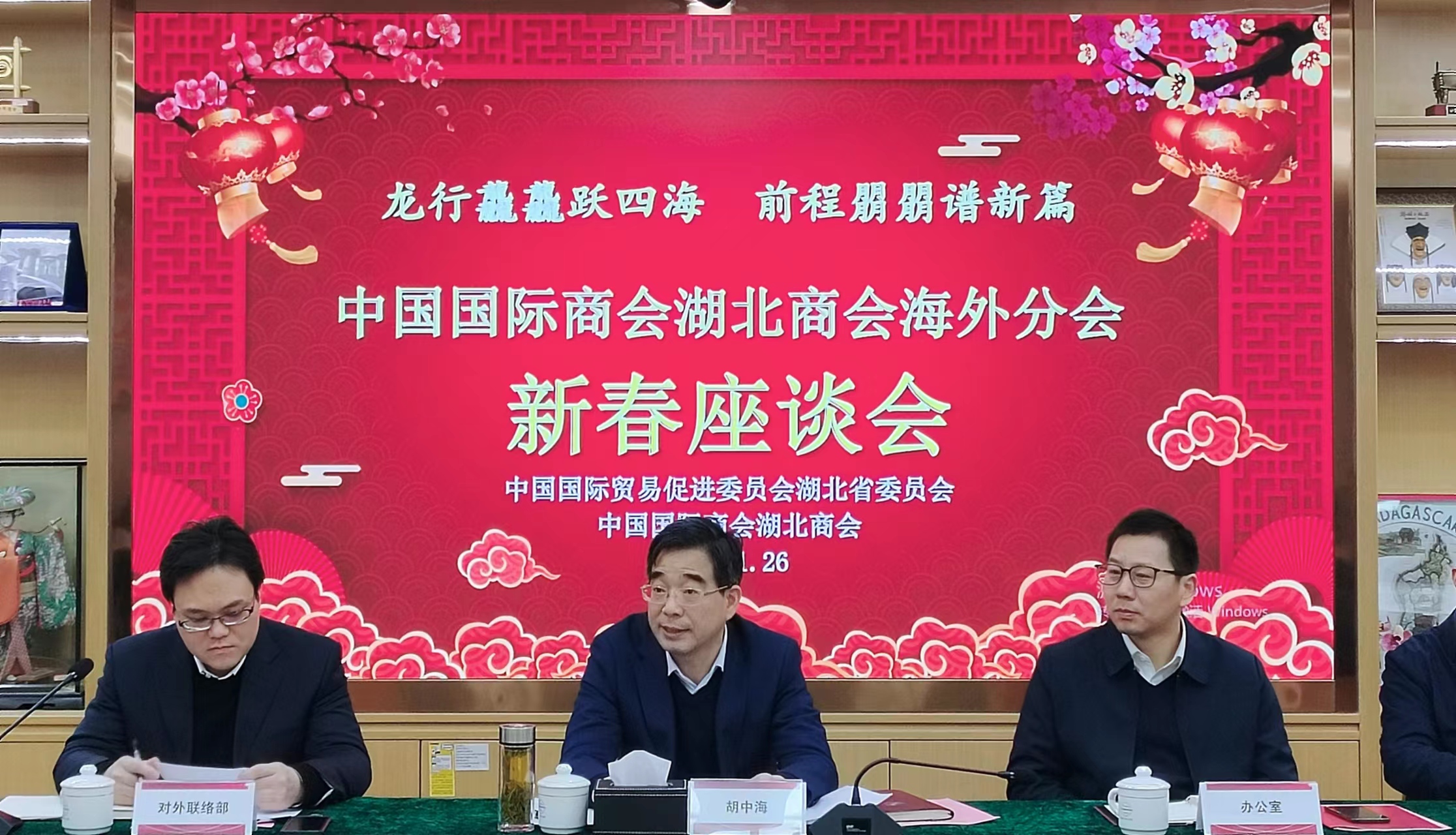 1月26日下午,中国国际商会湖北商会海外分会新春座谈会在湖北省贸促会“贸促之家”召开。13家海外分会、省国际商会会员企业代表及相关新闻媒体参加了座谈会。
