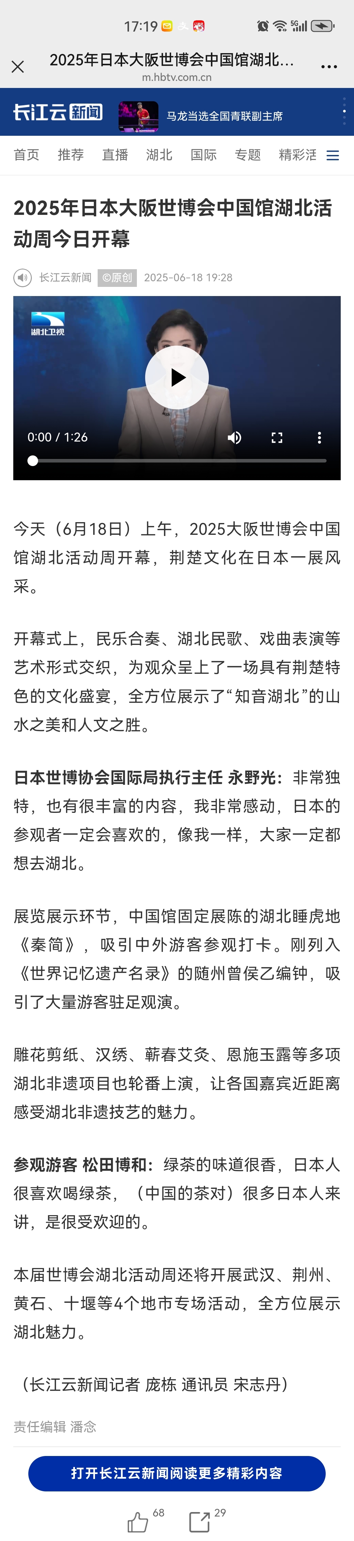 湖北电视台:2025年日本大阪世博会中国馆湖北活动周今日开幕