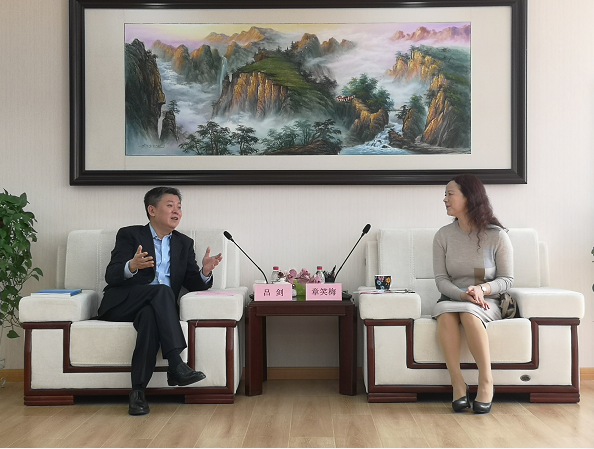 章笑梅会长(右)与吕剑先生(左)会谈