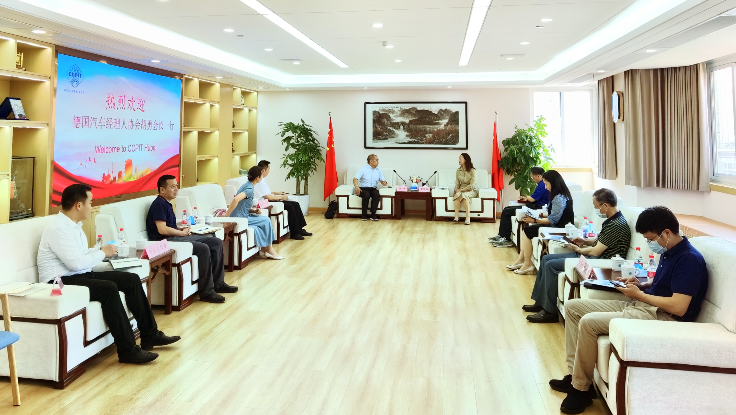 胡勇会长和杨志鸿执行会长分别汇报了德国汽车经理人协会和新西兰湖北商业总会的基本情况、主要业务和设立湖北代表处后的工作计划,希望在省贸促会的指导下,利用自身资源和优势,搭建更多双边交流平台,促进我省与德国及新西兰在经贸、文化、体育等各领域的合作,助力我省高质量对外开放。