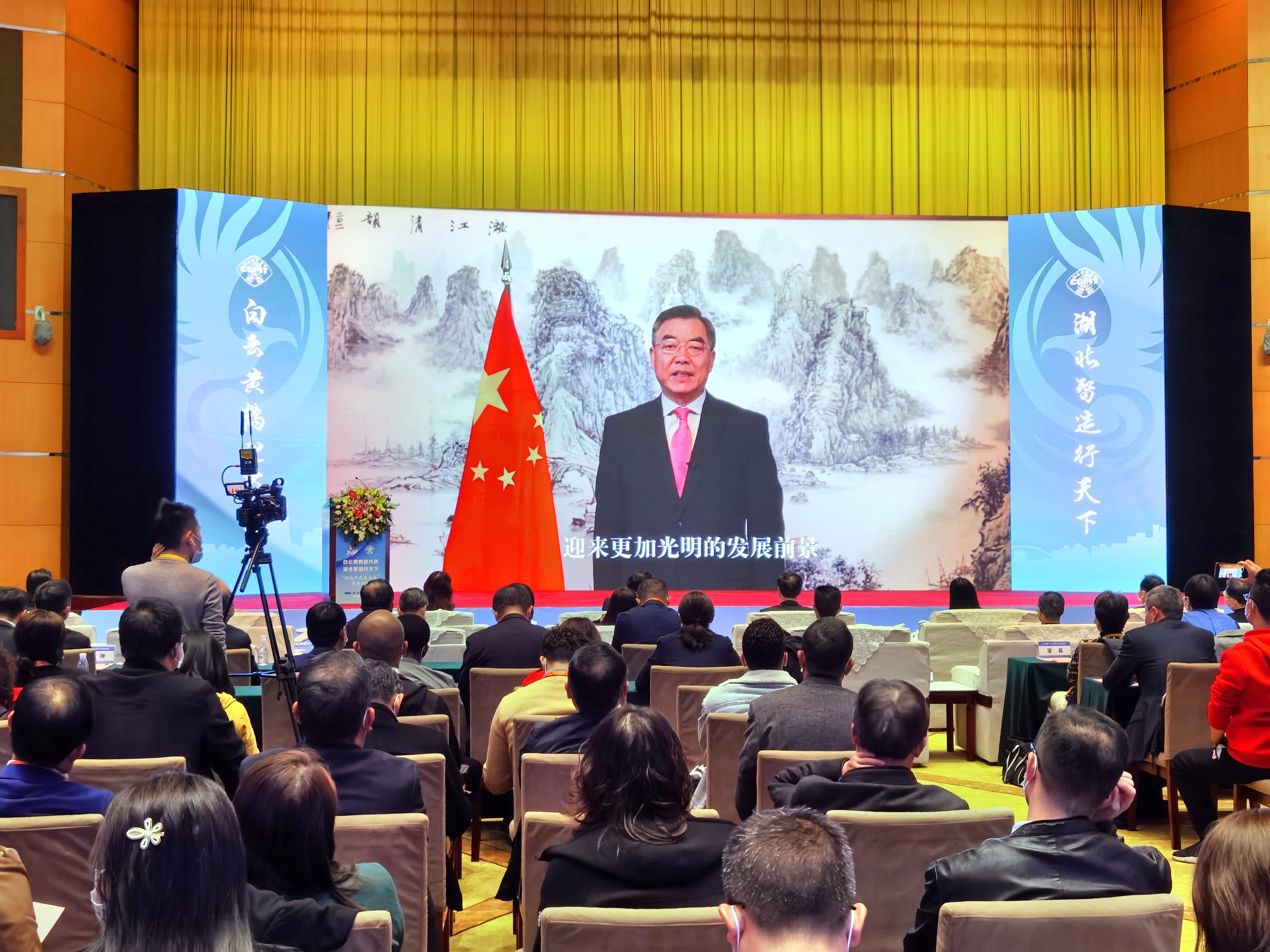 11月16日,东湖国际会议中心黄鹤厅宾客云集、气氛热烈,湖北省贸促会再赴全球华人华侨之约,成功举办“白云黄鹤迎万侨 湖北智造行天下”——2021年华创会湖北产品“走出去”专场活动。10余万侨胞齐聚线上线下。湖北省人民政府副省长赵海山出席并致辞,美国驻汉总领事蓝如瑾,驻鄂机构及友好商协会、侨领侨商及企业代表二百余人现场参会,省贸促会主任章笑梅主持活动。