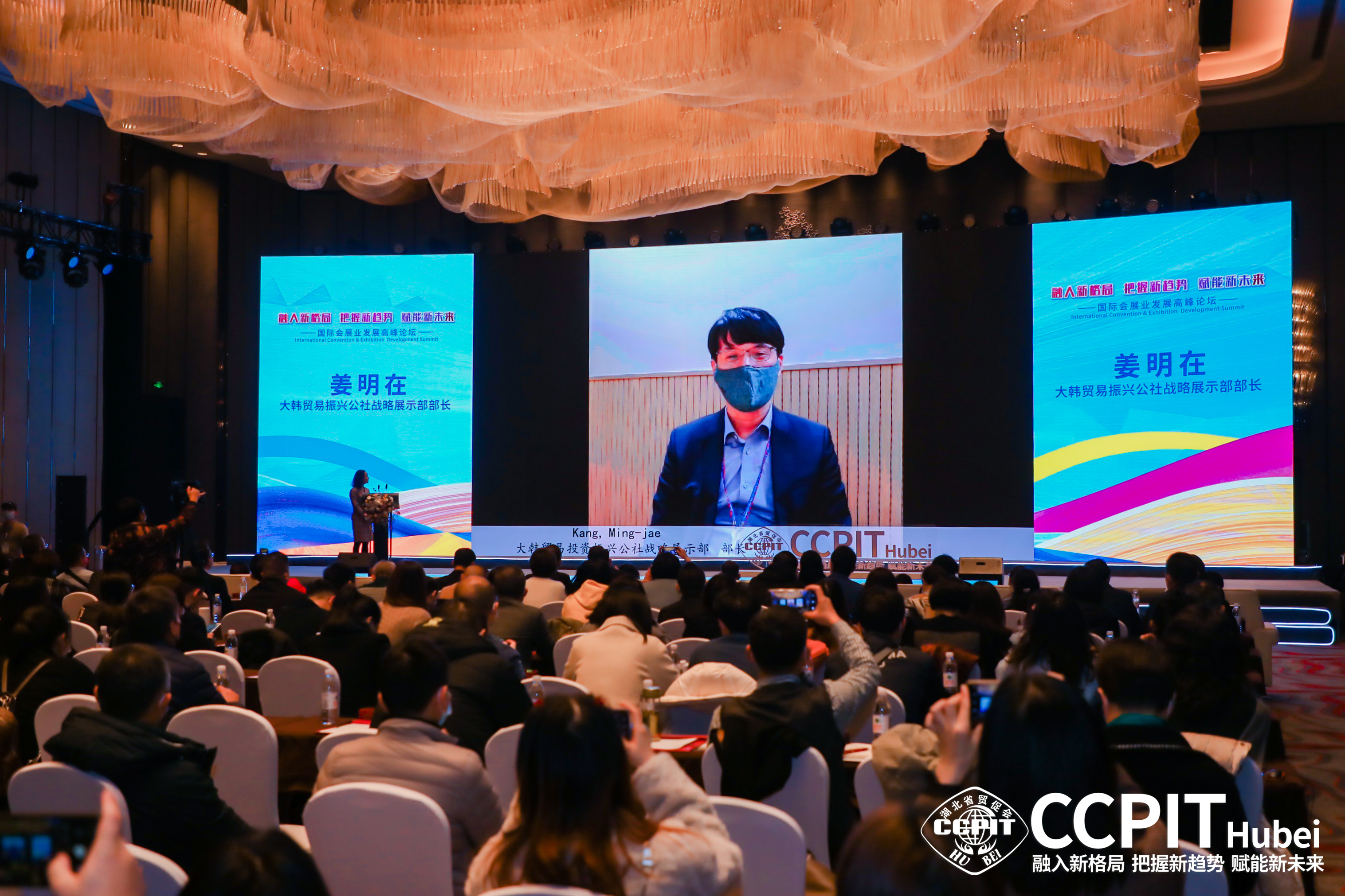 大韩贸易振兴公社战略展示部部长姜明在视频致辞表示,新冠疫情时代的展览业将会有许多变化,展览业未来将是线上线下活动的有机结合。武汉是中国中部代表性商业城市,经济充满活力、交通基础设施优越,可以说是最适合展览业发展的城市。期待湖北和韩国一起集中智慧,建设充满活力的东亚展览业生态圈。