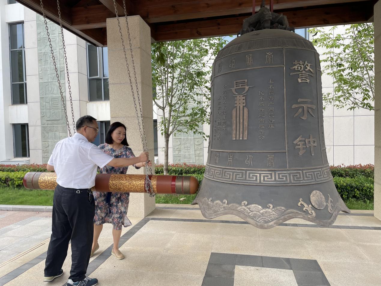 展厅参观结束后,大家齐聚在警钟下,面向“警示钟”列队,庄严肃立。李晓燕同志和会纪检委员李克华同志一起庄重地敲响了“警示钟”,警钟长鸣,声声入耳,警示大家反腐倡廉一刻也不能放松。