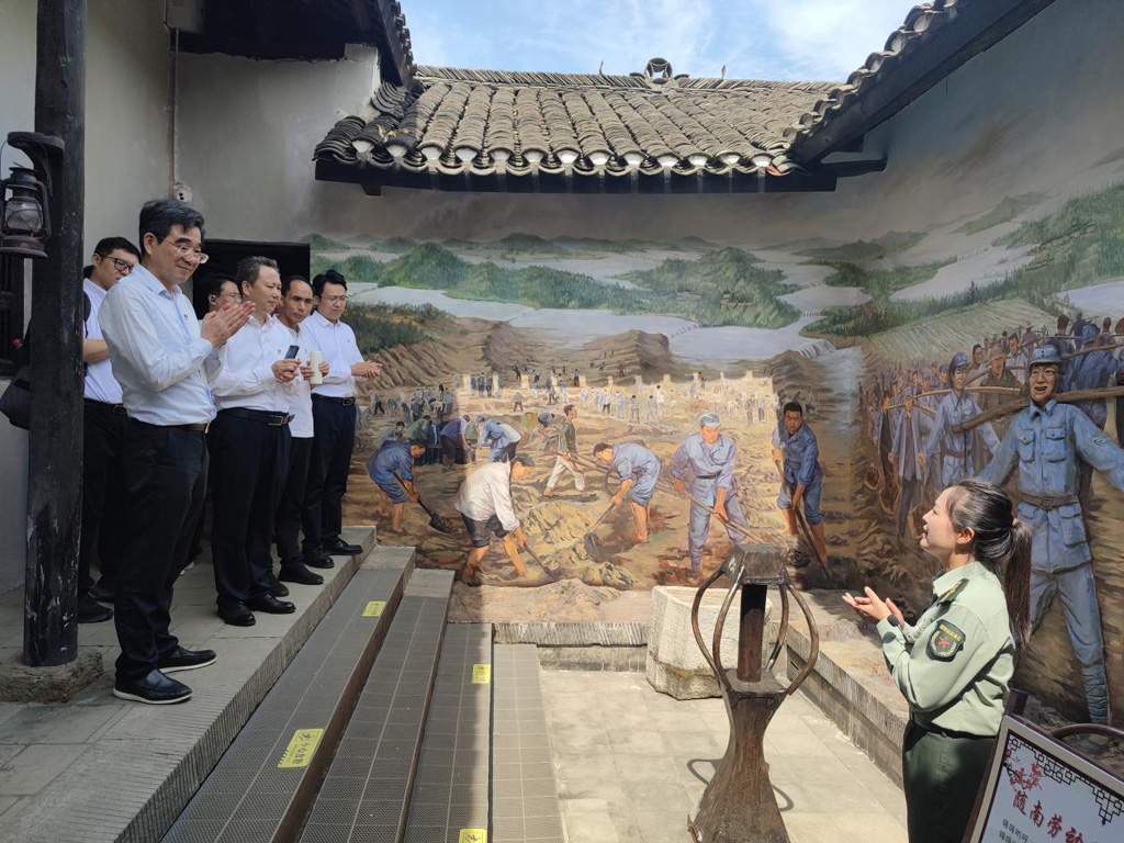在胡家河村,全体人员参观了农耕文化长廊、胡家河村村史馆和抗日军政大学第十分校旧址。在农耕文化长廊里,一件件古朴的农具,让每个人都沉浸在这份历史的厚重与时代的变迁之中。在村史文化馆里,大家边走边听,不时交流心得,体验着革命老区的历史变迁和乡村振兴的成果。在抗日军政大学第十分校旧址,在历史与现实的交汇之中,大家仿佛听到了当年抗大学员们的朗朗书声,仿佛看到了他们那一张张年轻的脸庞,感受到了他们“孤胆身居虎牢地、万分炽热在胸中”的坚定信念与万丈豪情。