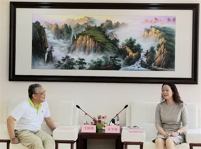 艾路明会长首先向章笑梅会长介绍了阿拉善SEE生态协会的总体情况、全国28个省级项目中心的环保项目及参与“巴黎气候峰会”等国际可持续发展事务的有关情况。他表示,阿拉善SEE希望借用省贸促会国际渠道广海外资源丰的优势,完善阿拉善环境产业联合会的平台作用,为阿拉善SEE的会员提供更优质服务同时,推动会员企业参与地方绿色经济建设。