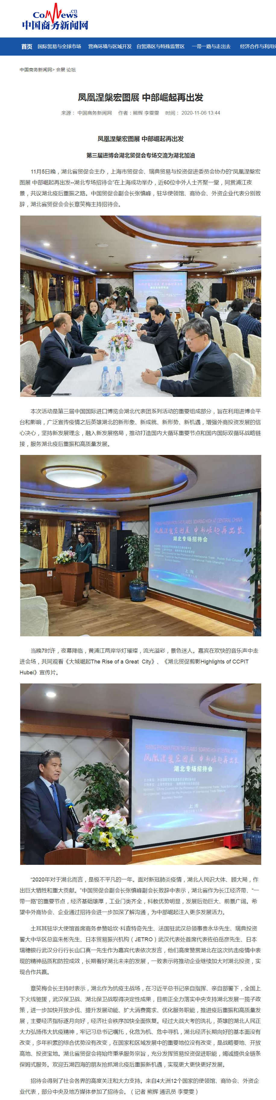 国际商报/中国商务新闻网:凤凰涅槃宏图展 中部崛起再出发 第三届进博会湖北贸促会专场交流为湖北加油