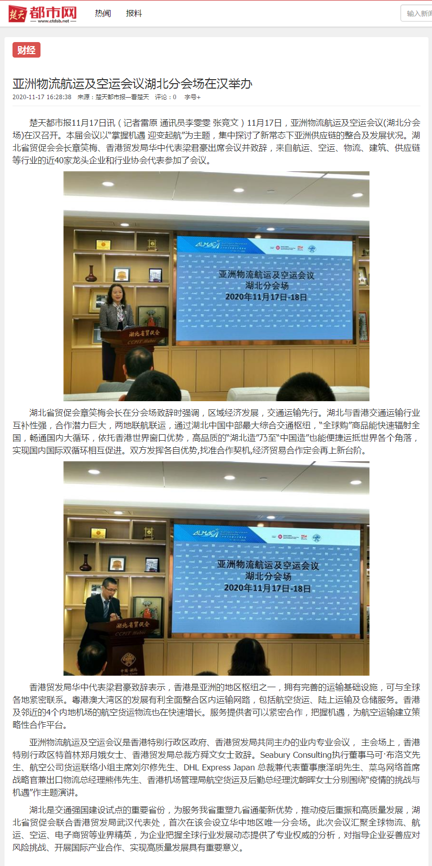 楚天都市报:亚洲物流航运及空运会议湖北分会场在汉举办