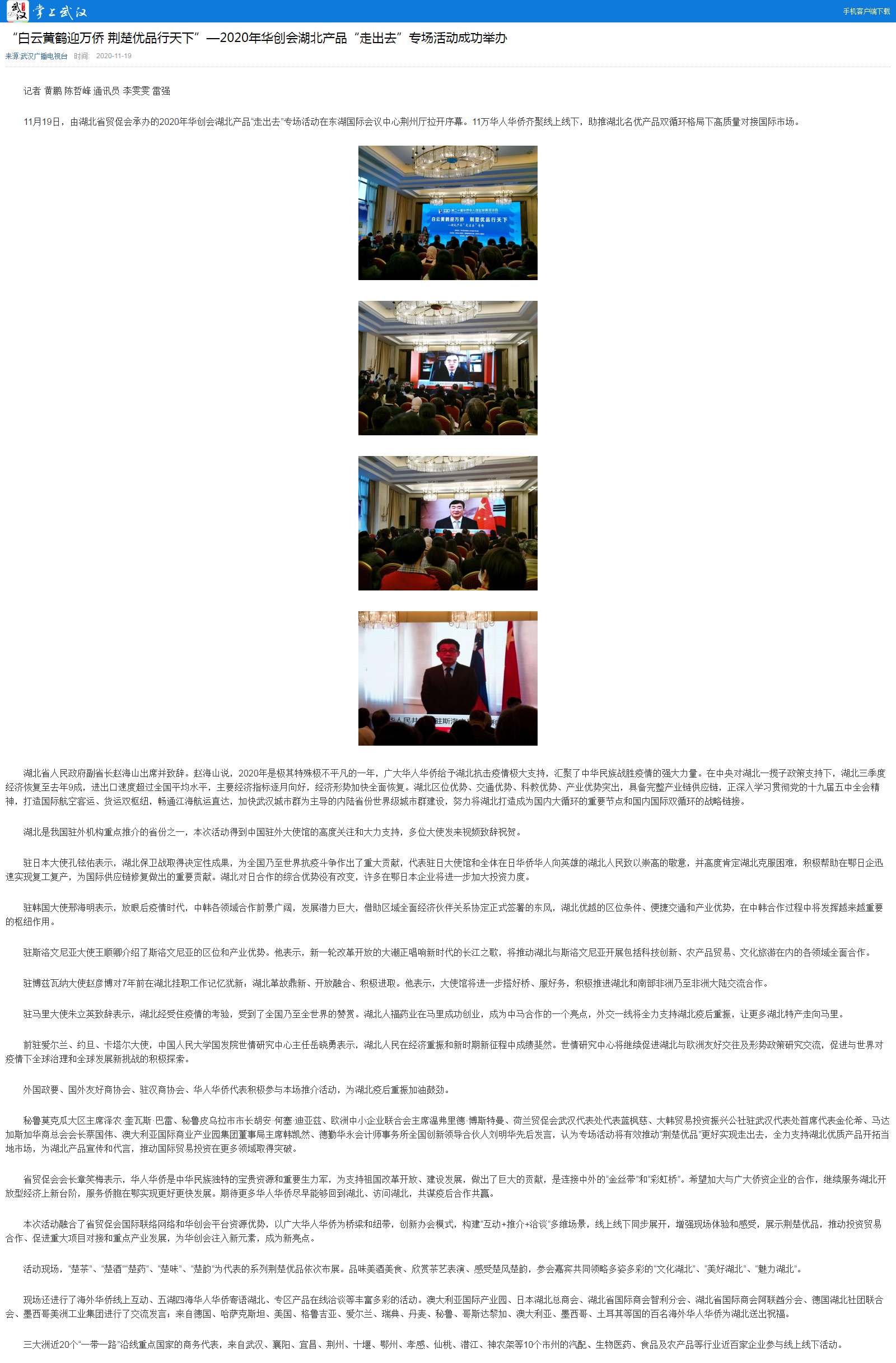 武汉广播电视台:“白云黄鹤迎万侨 荆楚优品行天下”—2020年华创会湖北产品“走出去”专场活动成功举办