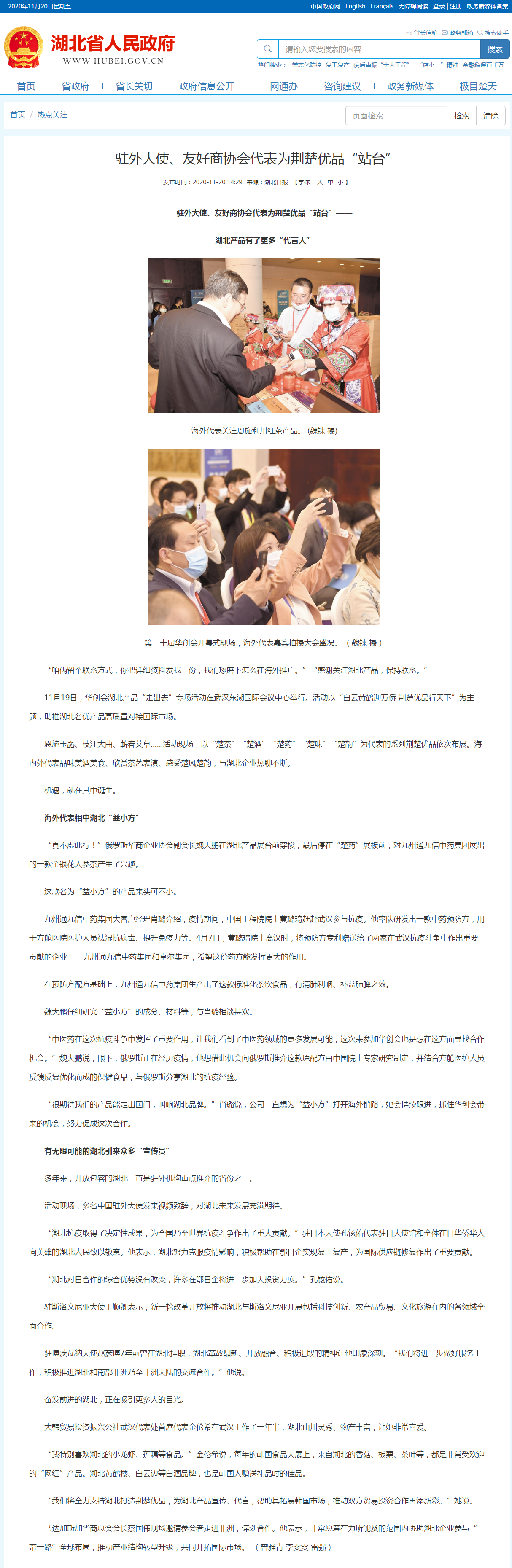 湖北省政府门户网:驻外大使、友好商协会代表为荆楚优品“站台”—— 湖北产品有了更多“代言人”