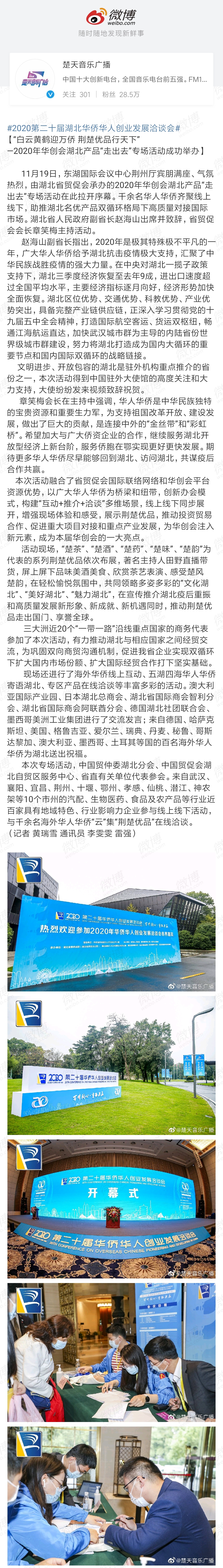 楚天音乐广播:“白云黄鹤迎万侨 荆楚优品行天下”2020年华创会湖北产品“走出去”专场活动成功举办