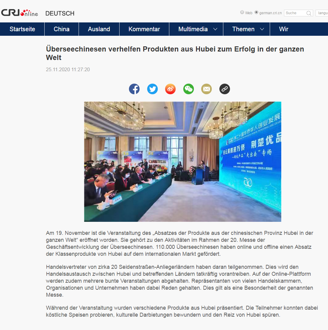 中央广电总台国际在线:Überseechinesen verhelfen Produkten aus Hubei zum Erfolg in der ganzen Welt