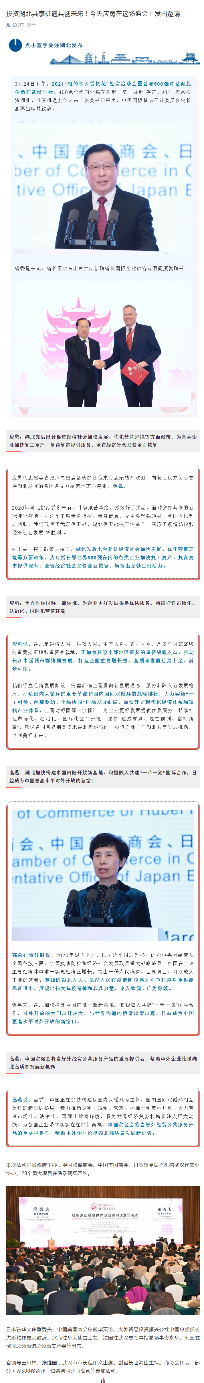 湖北发布:投资湖北共享机遇共创未来!今天应勇在这场盛会上发出邀请
