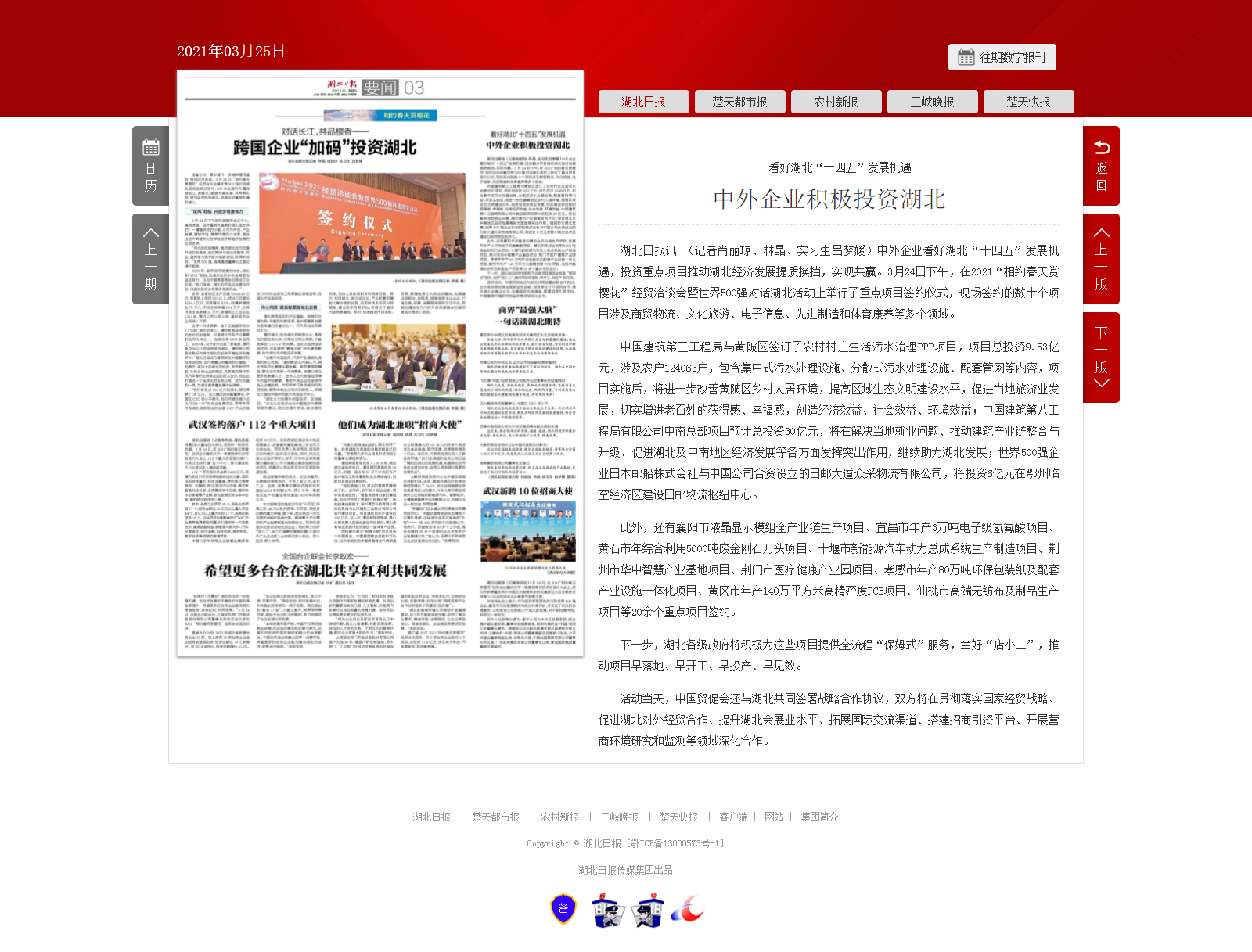 湖北日报:看好湖北“十四五”发展机遇 中外企业积极投资湖北