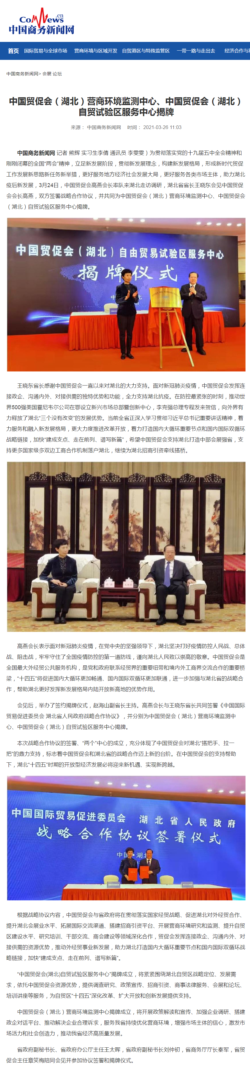 中国商务新闻网:中国贸促会(湖北)营商环境监测中心、中国贸促会(湖北)自贸试验区服务中心揭牌