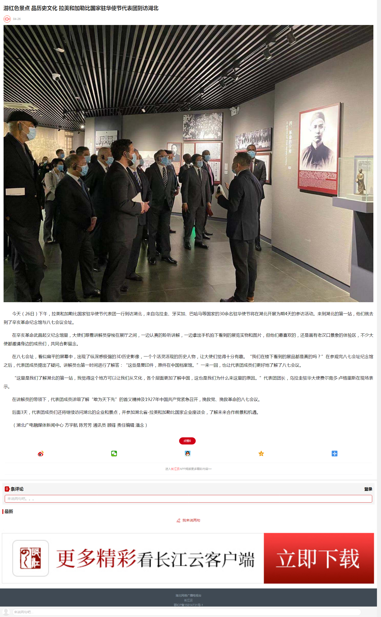 湖北电视台:游红色景点 品历史文化 拉美和加勒比国家驻华使节代表团到访湖北