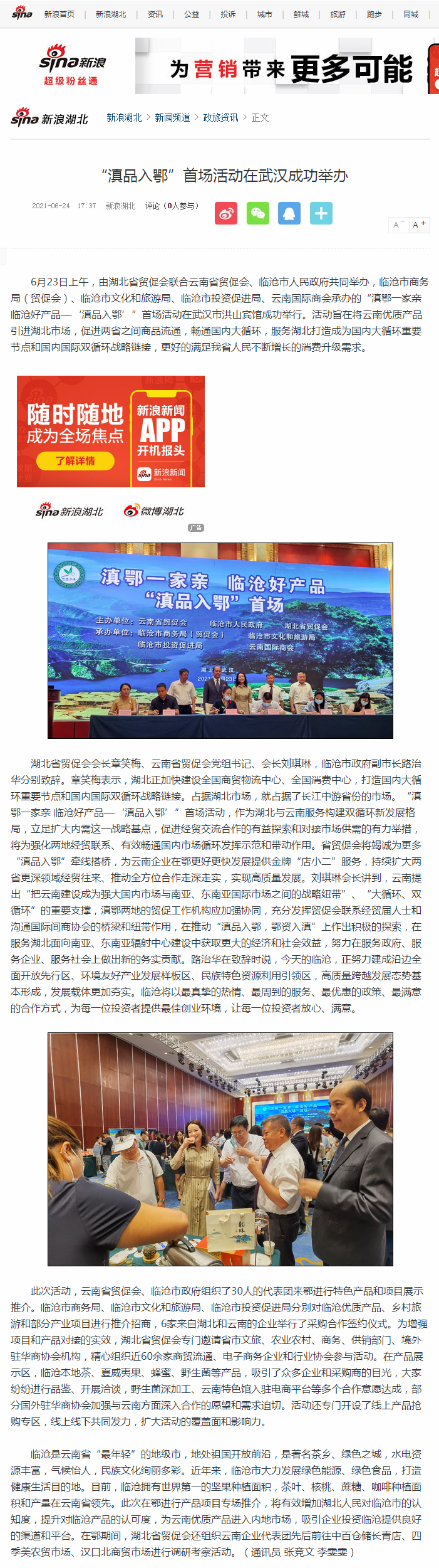 新浪网:“滇品入鄂”首场活动在武汉成功举办