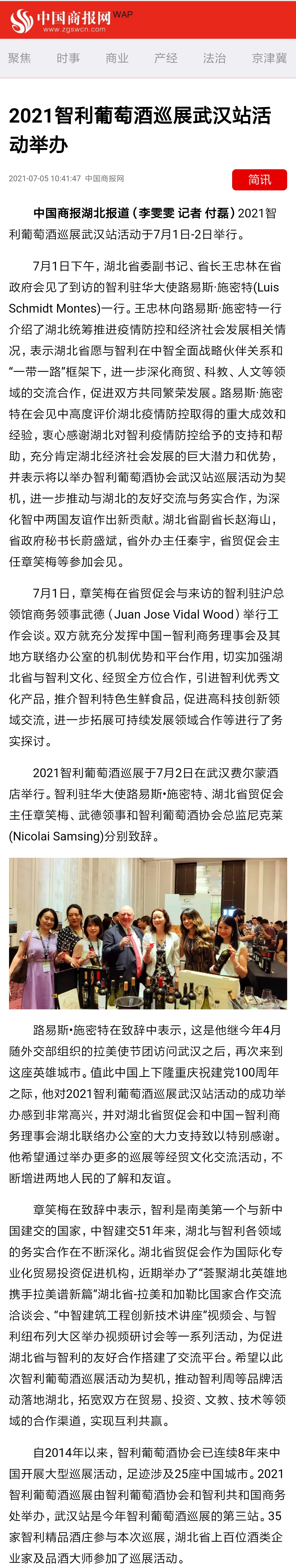 中国商报:2021智利葡萄酒巡展武汉站活动成功举办