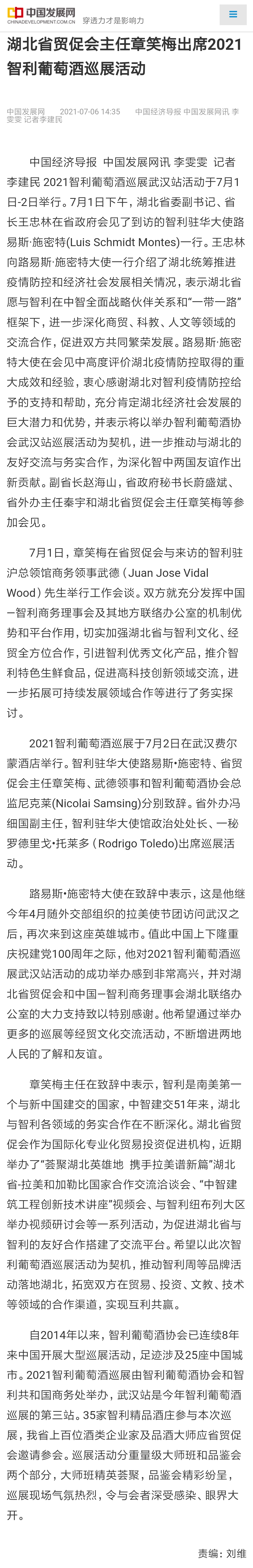 中国经济导报:湖北省贸促会主任章笑梅出席2021智利葡萄酒巡展活动