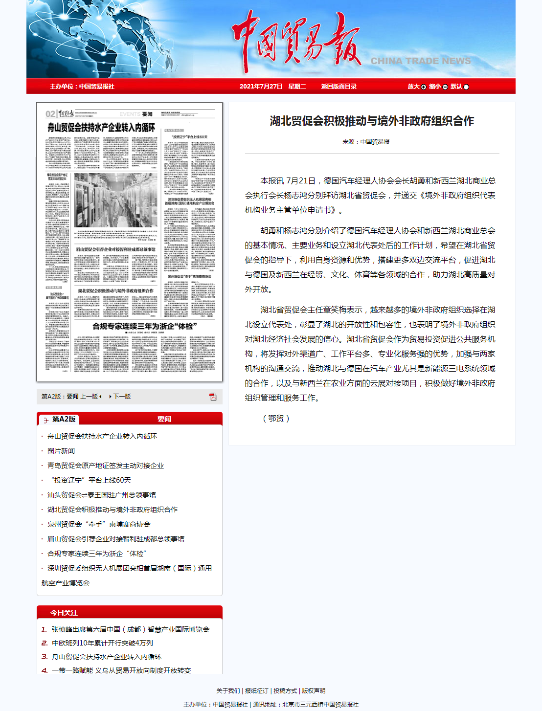 中国贸易报:湖北贸促会积极推动与境外非政府组织合作