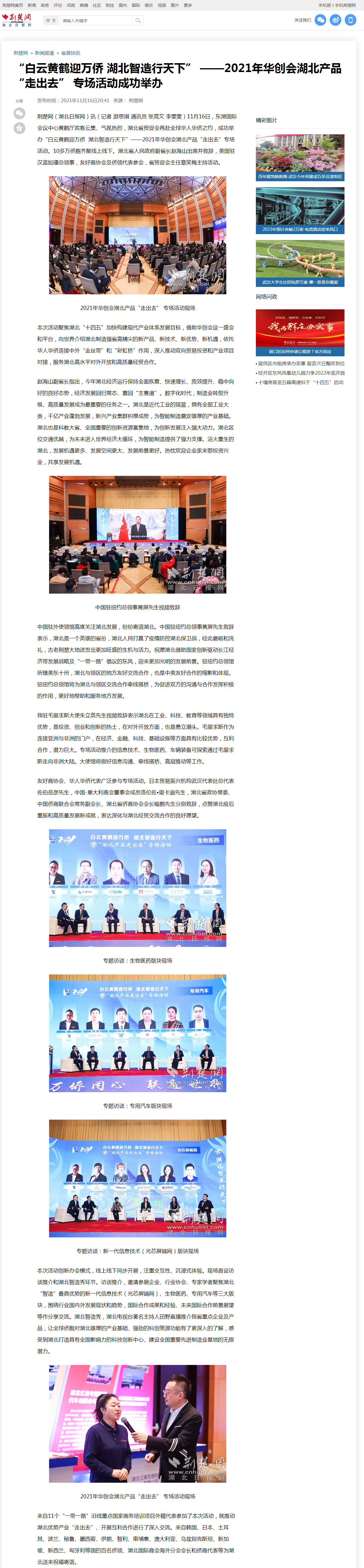 荆楚网:“白云黄鹤迎万侨 湖北智造行天下” ——2021年华创会湖北产品“走出去” 专场活动成功举办