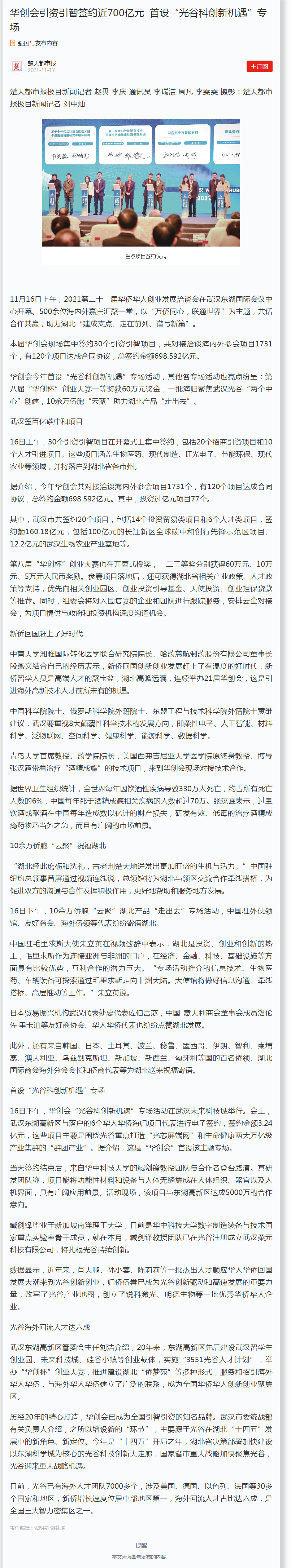 学习强国:华创会引资引智签约近700亿元