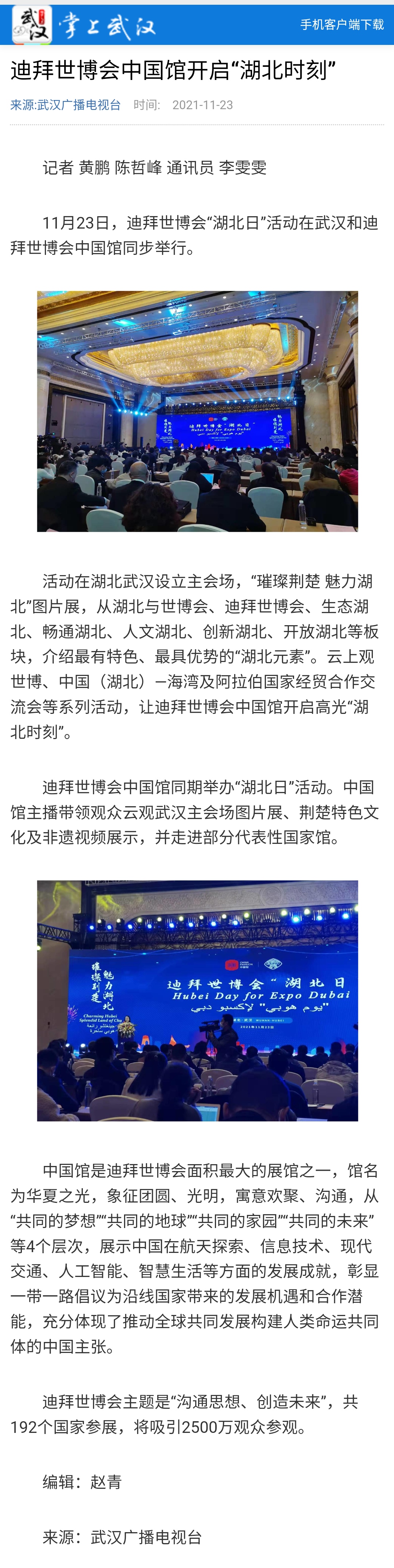 武汉广播电视台:迪拜世博会中国馆开启“湖北时刻”