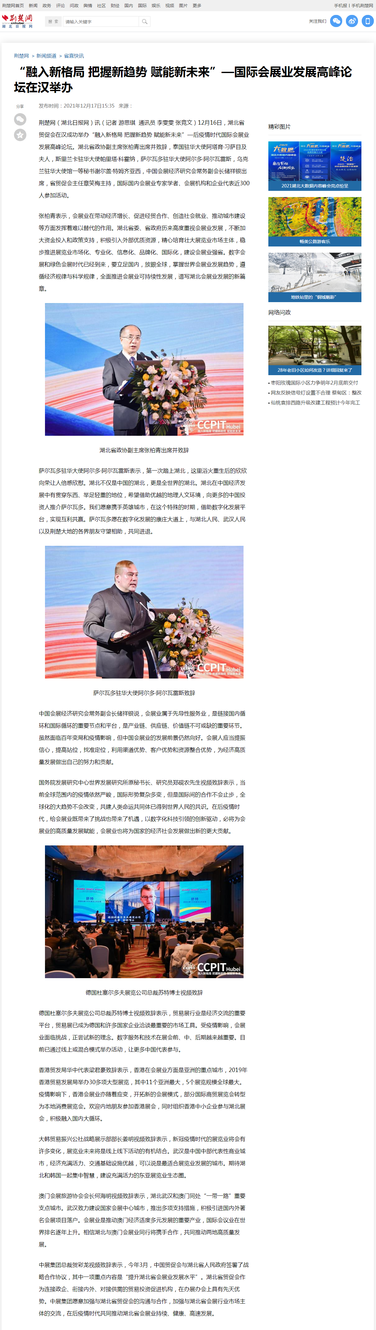 荆楚网:“融入新格局 把握新趋势 赋能新未来”—国际会展业发展高峰论坛在汉举办