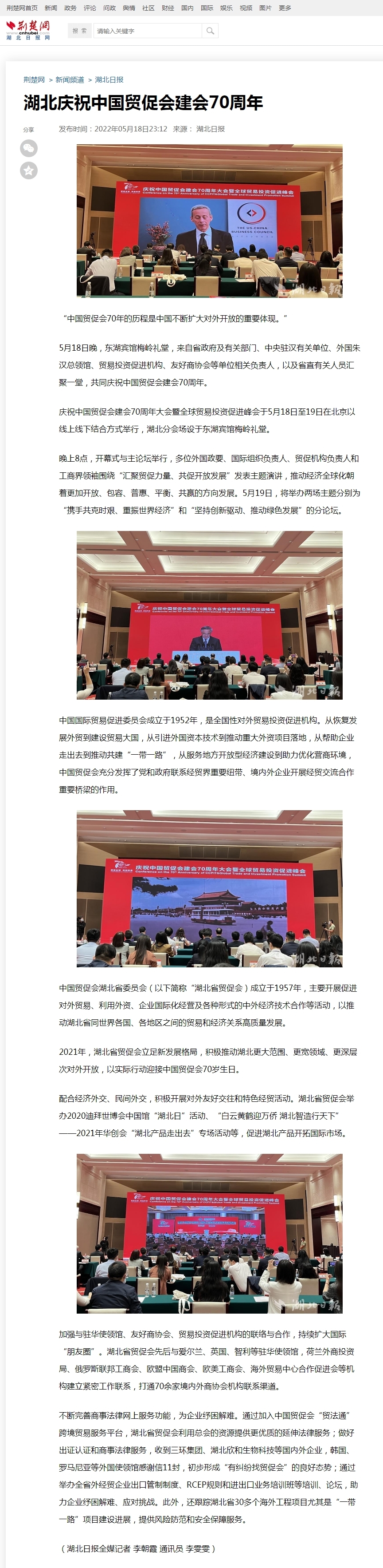 荆楚网:湖北庆祝中国贸促会建会70周年