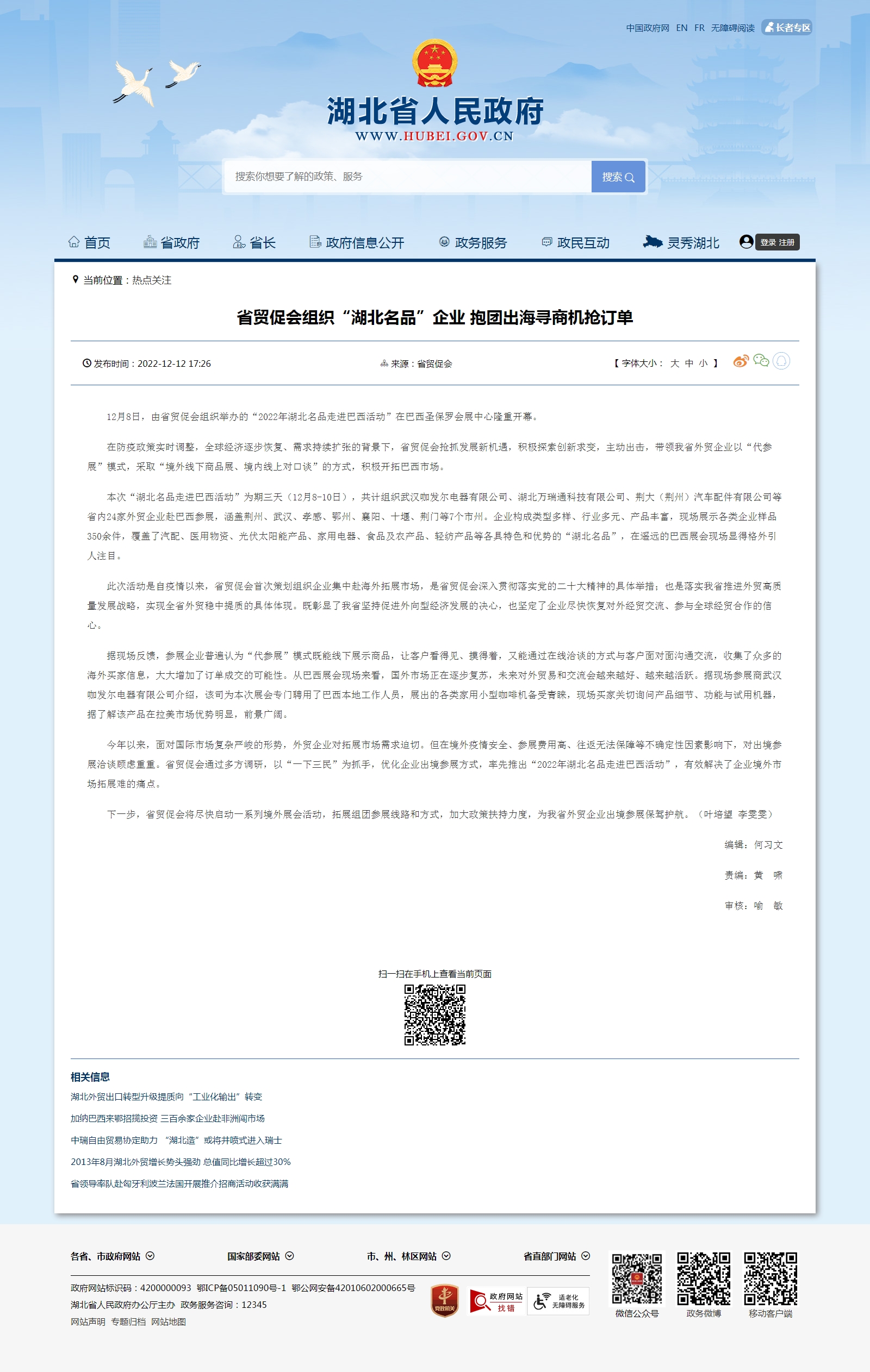 湖北省人民政府门户网:省贸促会组织“湖北名品”企业 抱团出海寻商机抢订单