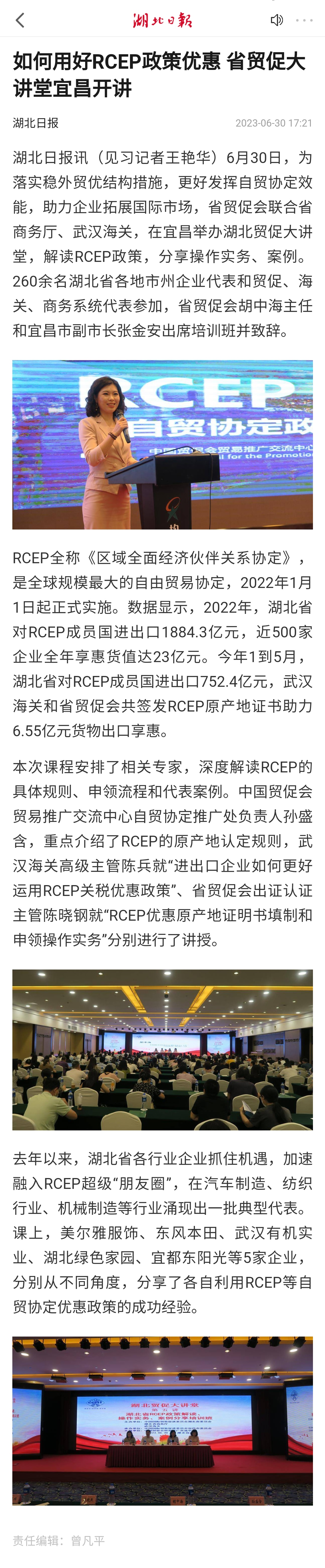 湖北日报:如何用好RCEP政策优惠 省贸促大讲堂宜昌开讲