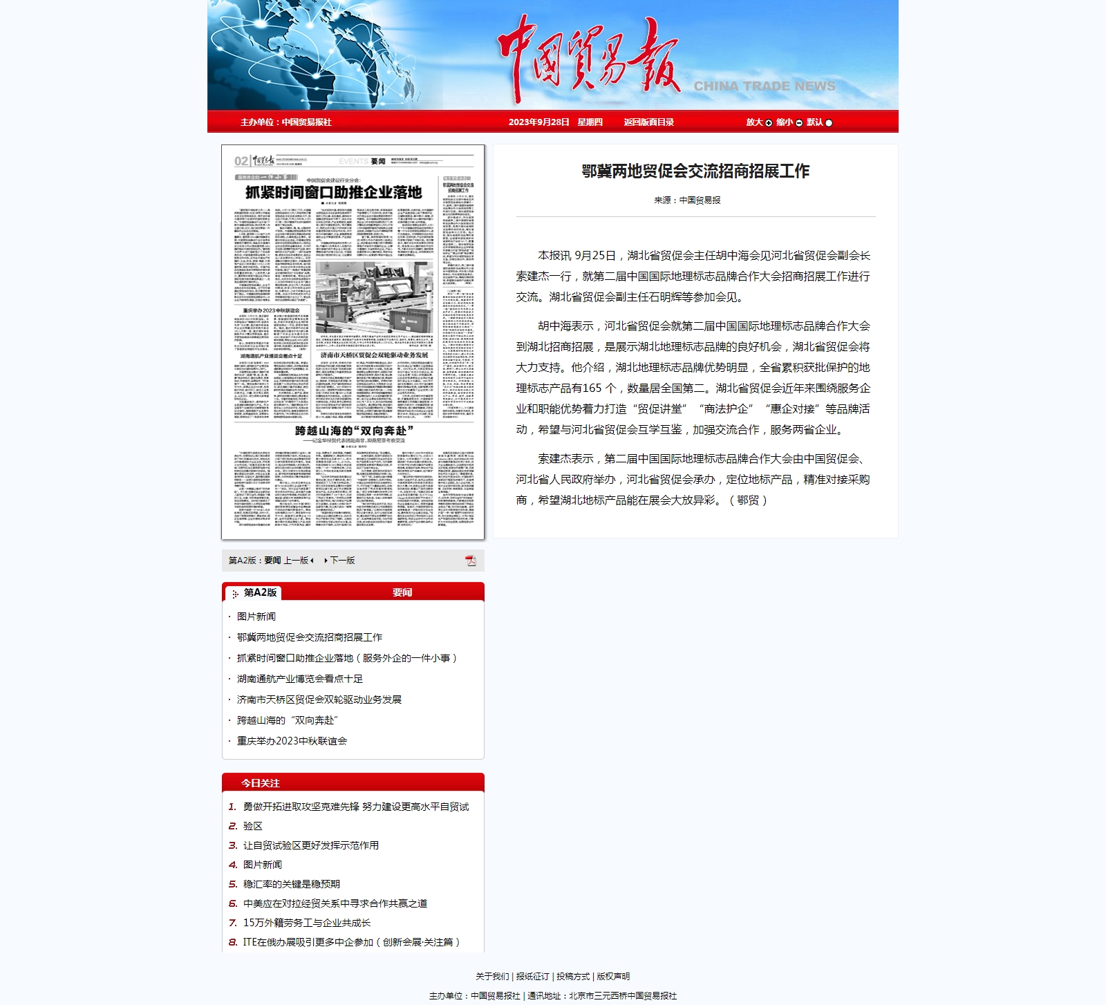 中国贸易报:鄂冀两地贸促会交流招商招展工作