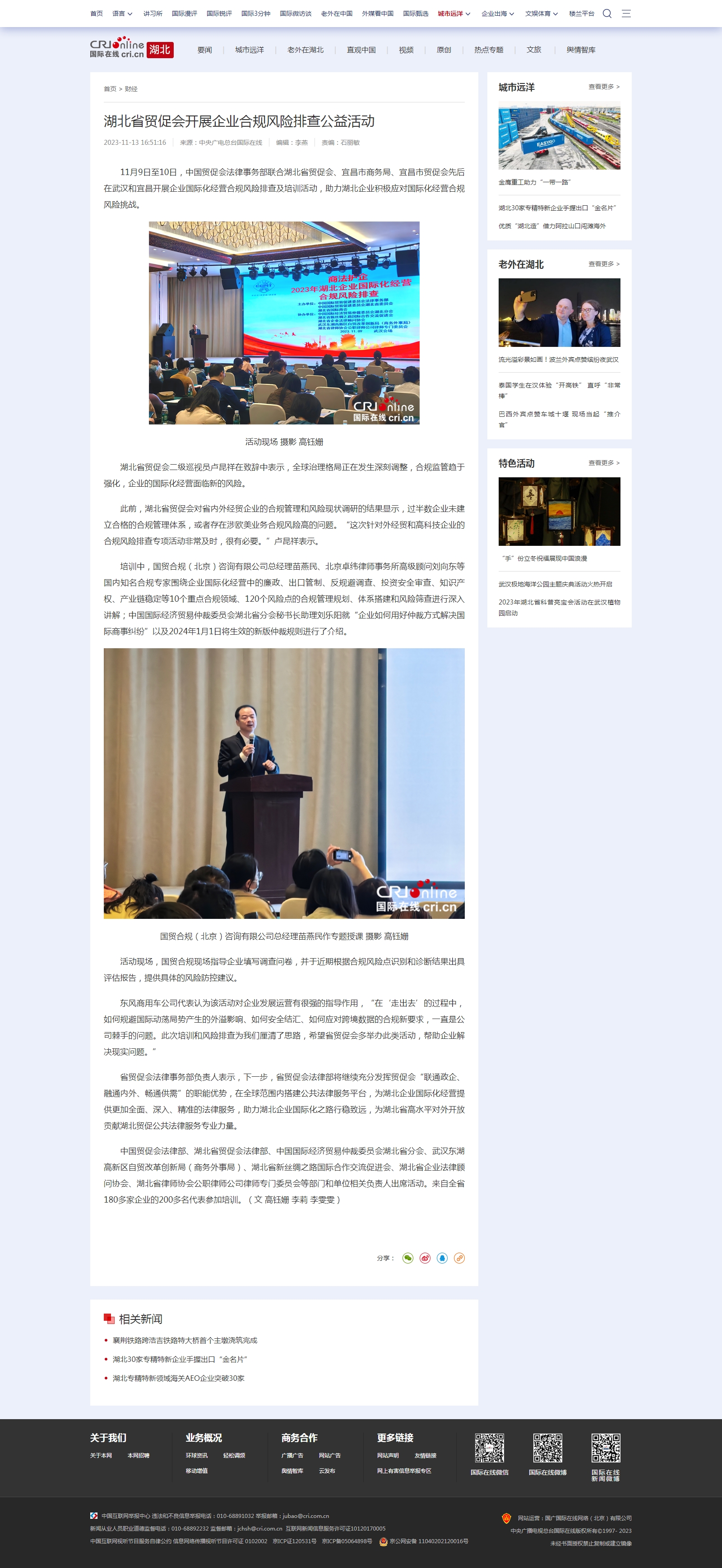中央广电总台国际在线:湖北省贸促会开展企业合规风险排查公益活动