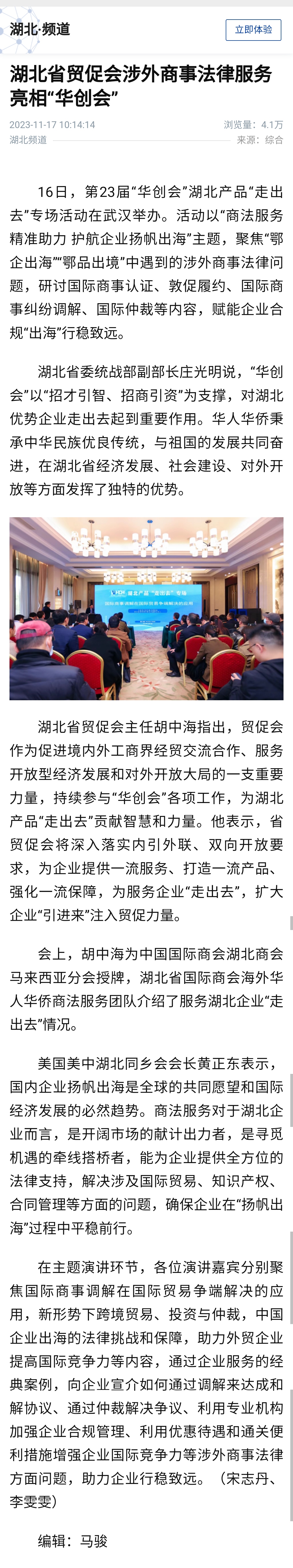 新华社:湖北省贸促会涉外商事法律服务亮相“华创会”