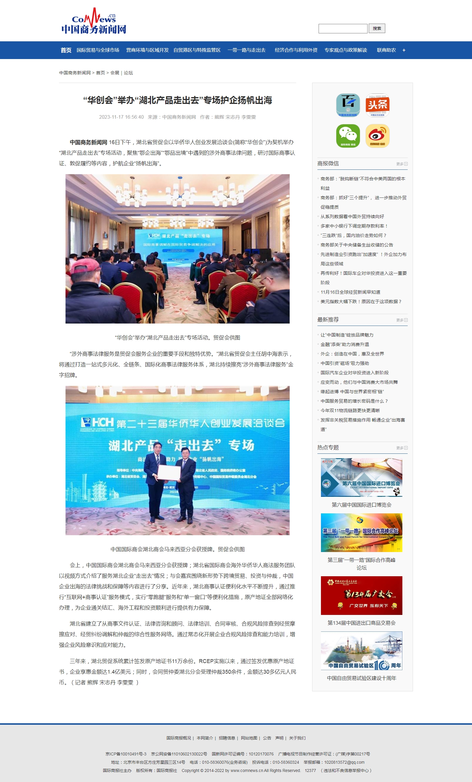国际商报:“华创会”举办“湖北产品走出去”专场护企扬帆出海