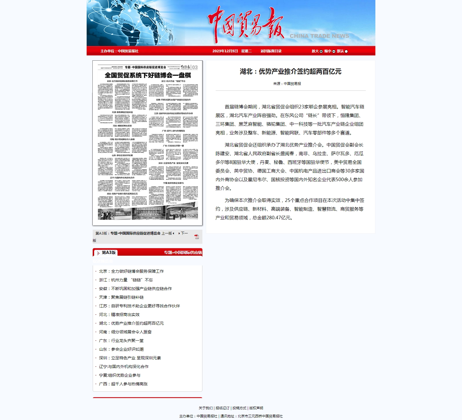 中国贸易报:湖北:优势产业推介签约超两百亿元