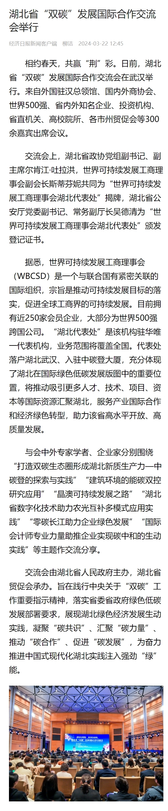 经济日报:湖北省“双碳”发展国际合作交流会举行