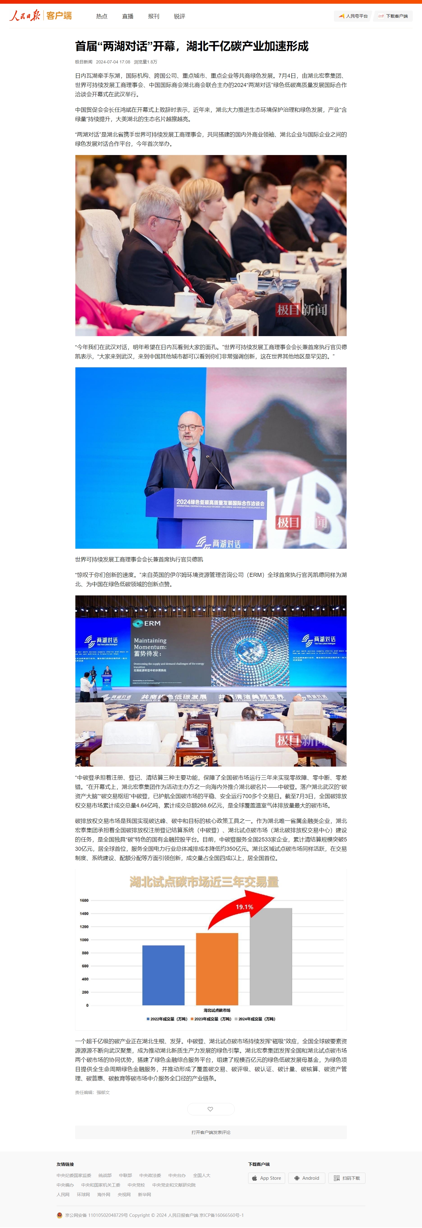 人民日报:首届“两湖对话”开幕,湖北千亿碳产业加速形成