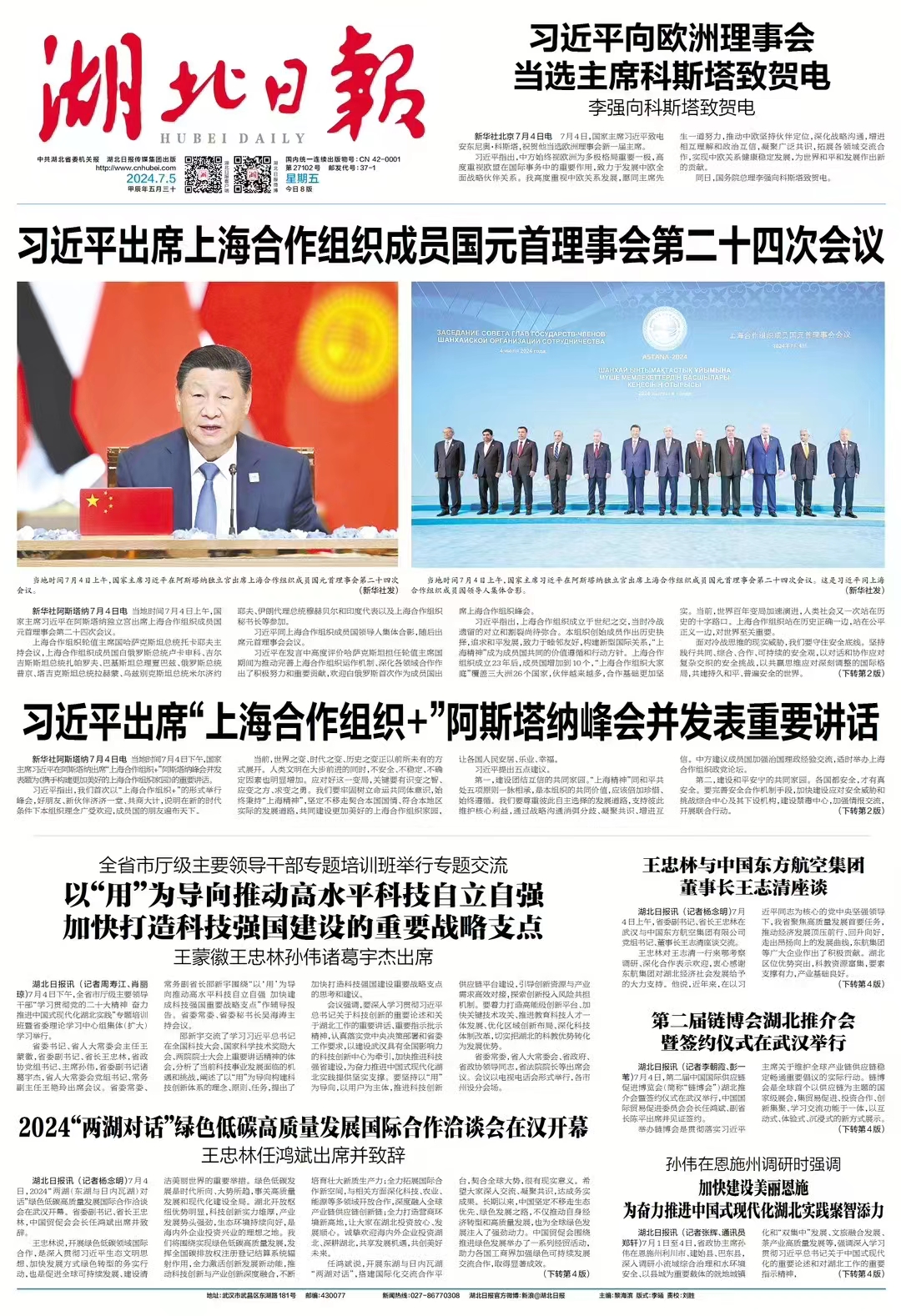 湖北日报头版:2024“两湖对话”绿色低碳高质量发展国际合作洽谈会在汉开幕 王忠林任鸿斌出席并致辞