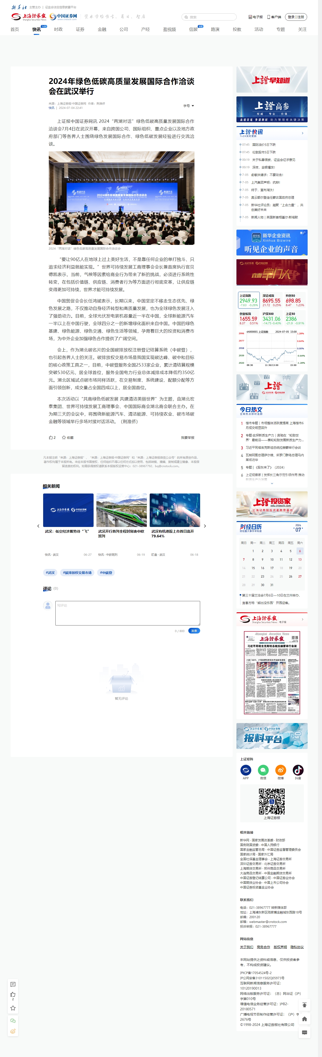 上海证券报:2024年绿色低碳高质量发展国际合作洽谈会在武汉举行