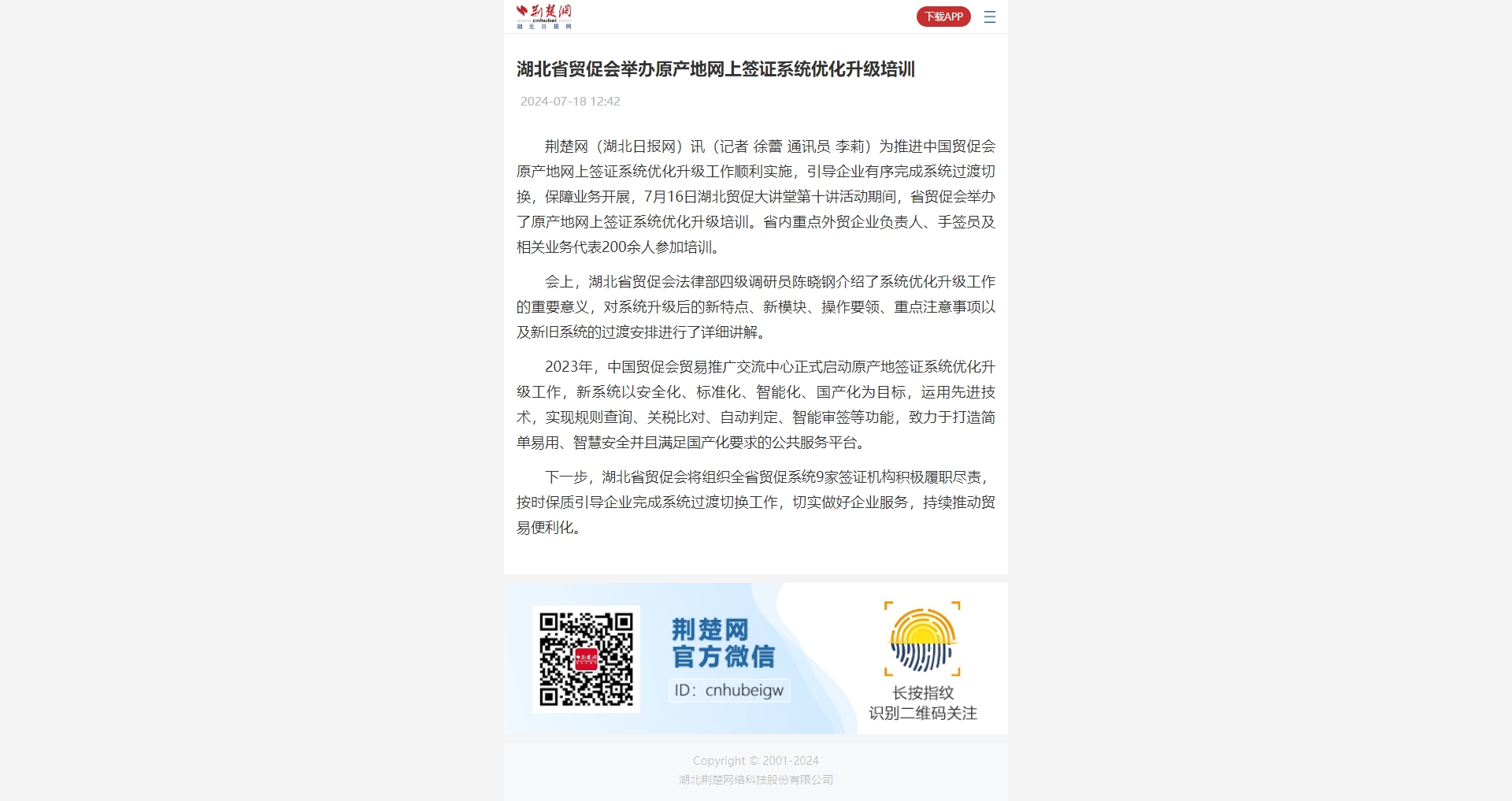 荆楚网:湖北省贸促会举办原产地网上签证系统优化升级培训