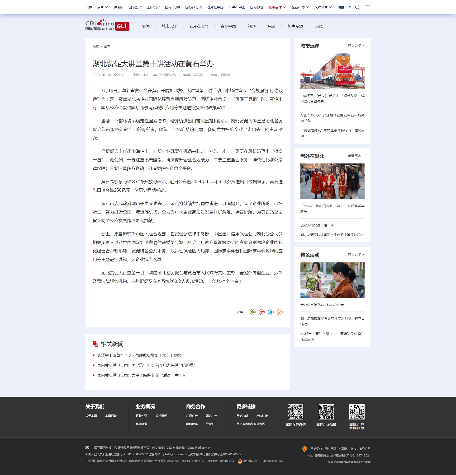 国际在线:湖北贸促大讲堂第十讲活动在黄石举办
