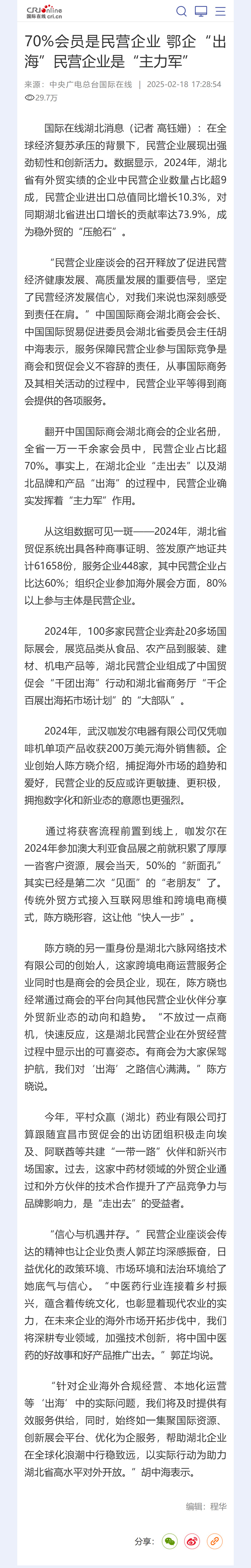 70%会员是民营企业 鄂企“出海”民营企业是“主力军”