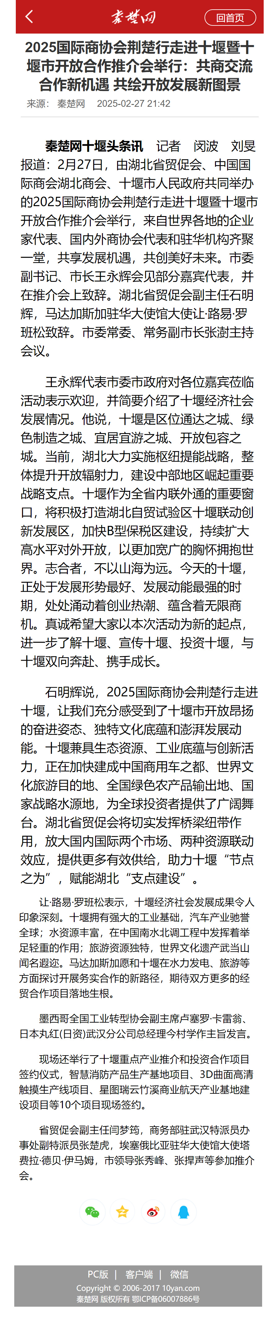 2025国际商协会荆楚行走进十堰暨十堰市开放合作推介会举行:共商交流合作新机遇 共绘开放发展新图景