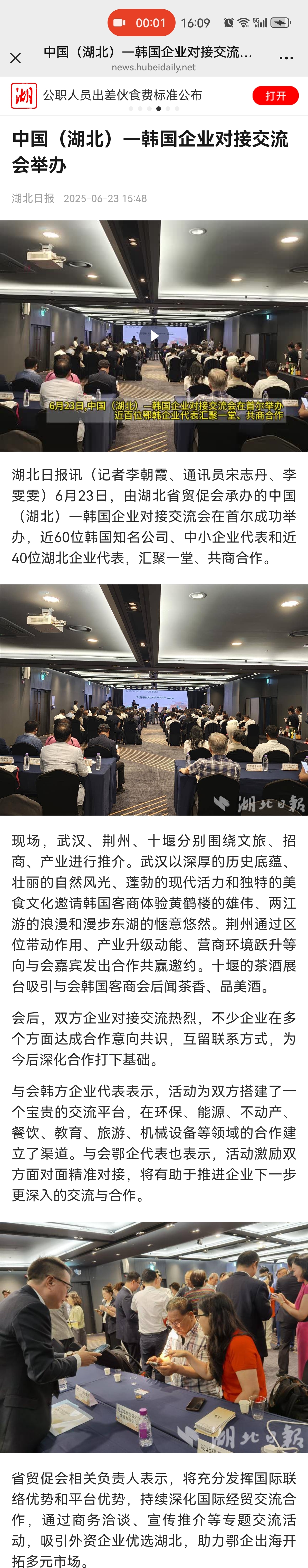 湖北日报:中国(湖北)—韩国企业对接交流会举办