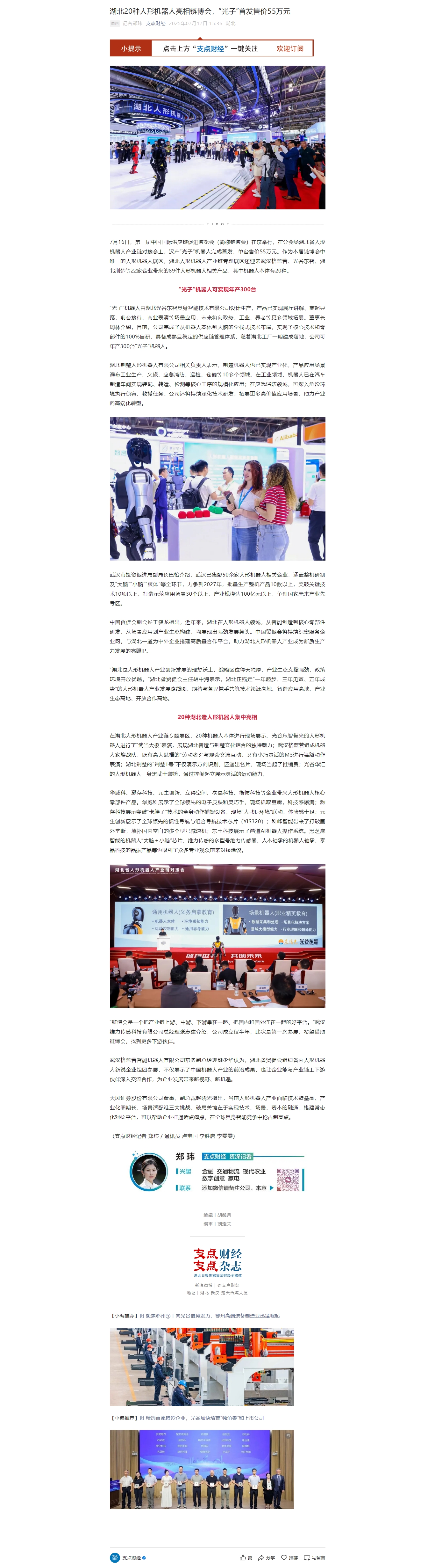 支点财经:湖北20种人形机器人亮相链博会,“光子”首发售价55万元