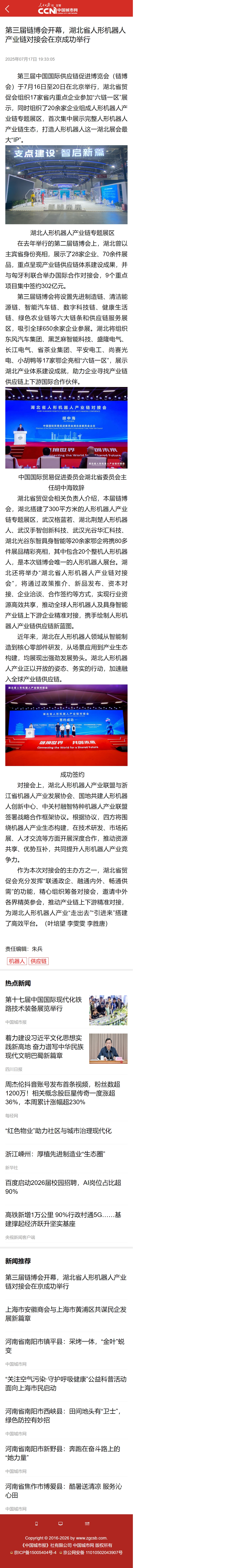 中国城市网:第三届链博会开幕,湖北省人形机器人产业链对接会在京成功举行