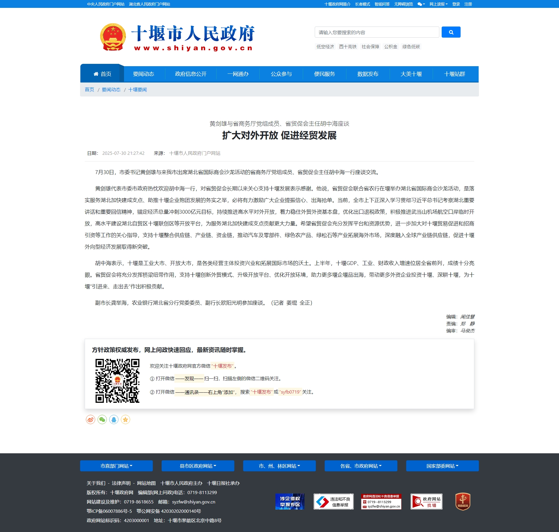 十堰市委市政府门户网:黄剑雄与省商务厅党组成员、省贸促会主任胡中海座谈