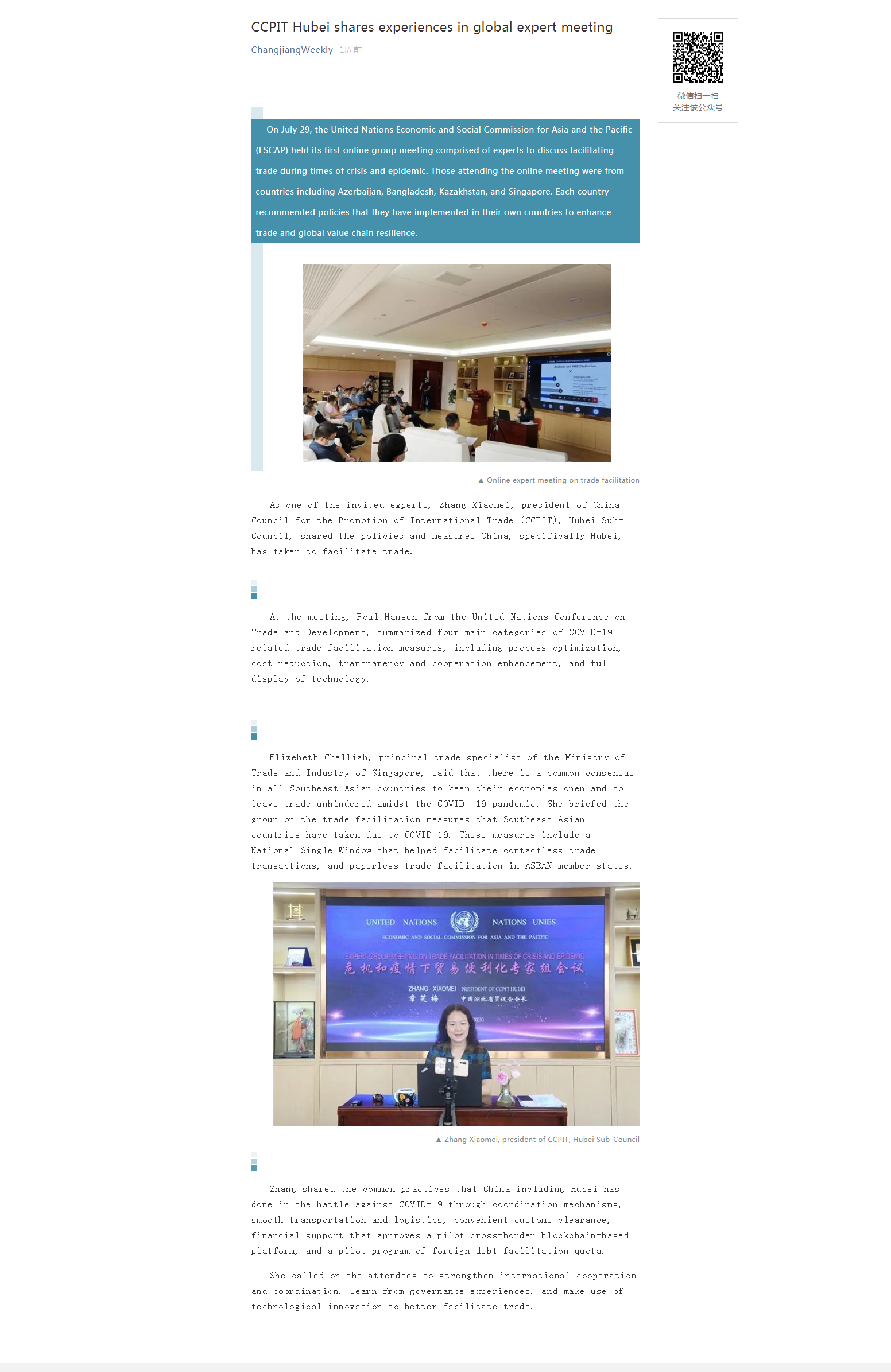 长江周报:CCPIT Hubei shares experiences in global expert meeting